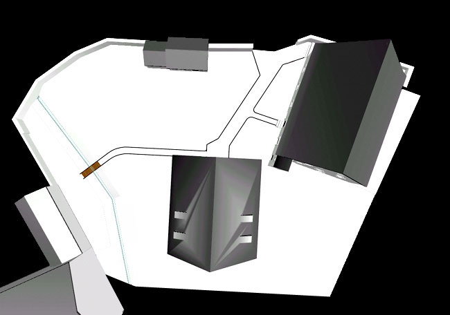 Zu sehen ist das zu bebauende Grundstück mit seinen denkmalgeschützten Altbauten, der Wegführung und dem kleinen Bach.